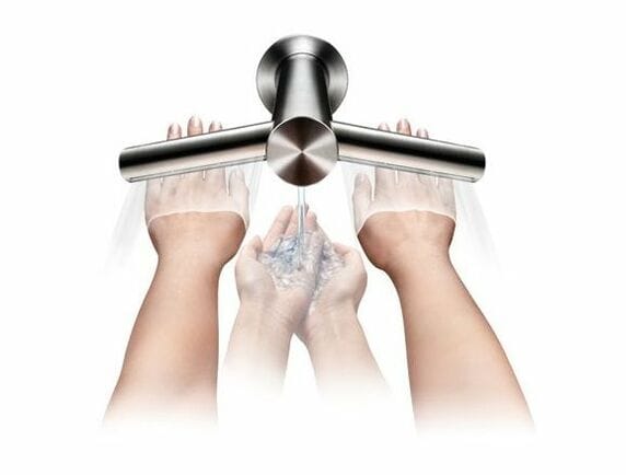 同社の製品紹介ページを見ると、この「Dyson Airblade Tapハンドドライヤー」はなんと蛇口一体型。見た目がオシャレすぎて、「ハンドドライヤー」の面影はどこにもない。まさに羽なし扇風機を初めて見たときと同じ衝撃である。