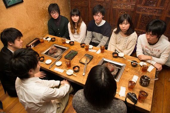 12月上旬のとある水曜日。ちょうど昼どきに、東京・渋谷の焼き肉店で、転職サイトなどを運営するビズリーチ(渋谷区)の取締役、新入社員、内定者が、2016年4月の入社を目指す大学3年生4人と大学院1年生1人と共に焼き肉を囲んでいた。