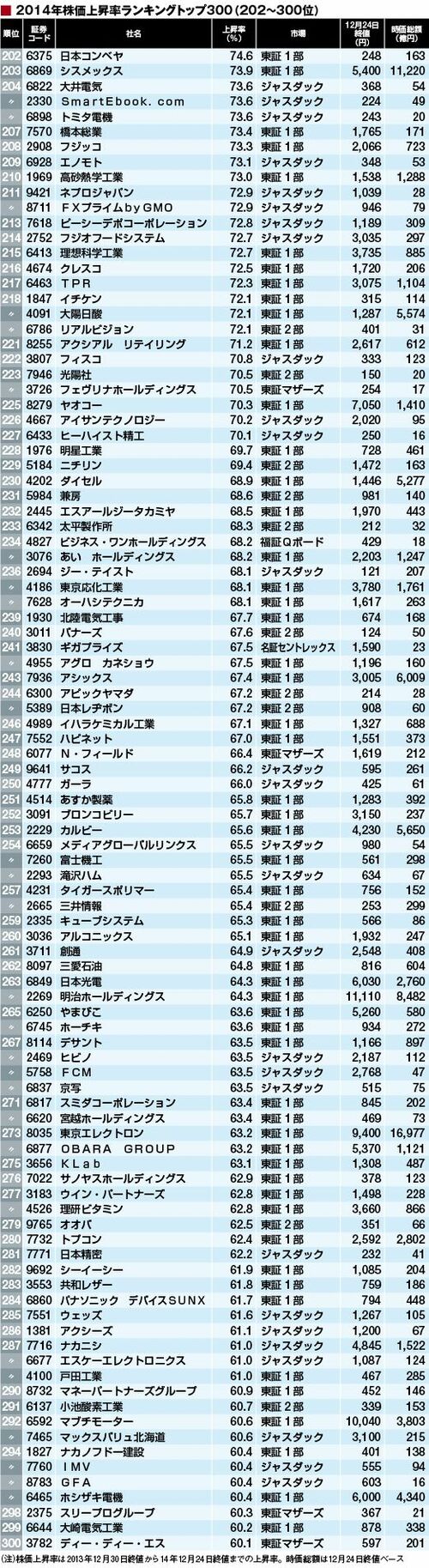 政治・経済・投資 2014年「株価上昇率」ランキング、トップ300 600%以上株価が上がった会社はどこ? 3分で読める 公開日時:2014/12/30 06:00 藤尾 明彦 東洋経済 記者 フォロー 1/4 PAGES 2/4 PAGES 3/4 PAGES 4/4 PAGES