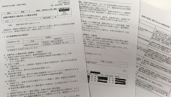 これは、約18万3000件のかんぽの不適切販売で9月11日から日本郵便やかんぽ生命に立入検査をしていた金融庁総合政策局が、各郵便局への抜き打ち検査を開始したことを示す文書だ。