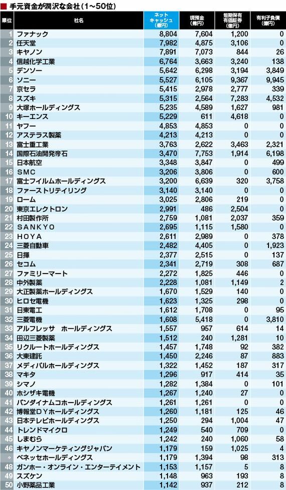 政治・経済・投資 「金持ち企業」トップ200社【2014年版】 1位はファナック、2位に任天堂 3分で読める 公開日時:2014/12/30 06:00 東洋経済オンライン編集部 フォロー 1/5 PAGES 2/5 PAGES 次ページが続きます:【続いて51~100位!】 3/5 PAGES 4/5 PAGES 5/5 PAGES
