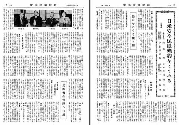 「週刊東洋経済」の単独インタビューや座談会にも複数回登場しており、その第一弾が1953(昭和28)年の座談会「日米安全保障条約をどう見る」である。