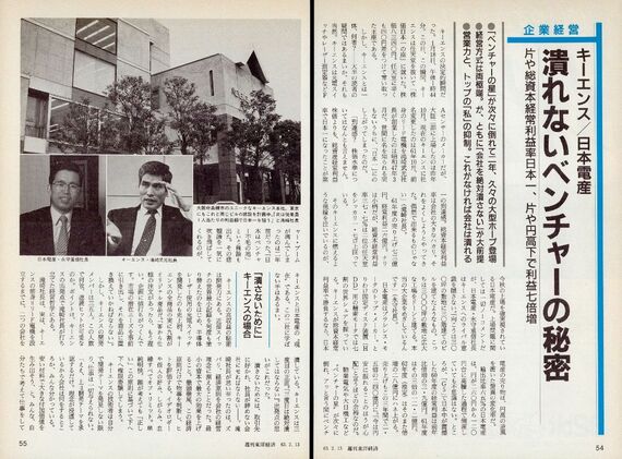 今回紹介するアーカイブ記事には滝崎氏より1歳年長の日本電産・永守重信社長も登場する。2人とも40代半ばの若さである。上場後の日本電産はM&Aにより果敢に企業規模を拡大させ、時価総額は現在4.6兆円。25位に付けている。円高不況などの影響でベンチャー倒産が相次ぎ、「ベンチャー不毛」といわれた時期に潰れなかった2社のユニークさを描き出した梅沢正邦記者の記事から、成長を続ける企業に共通した特徴を学べるはずだ。