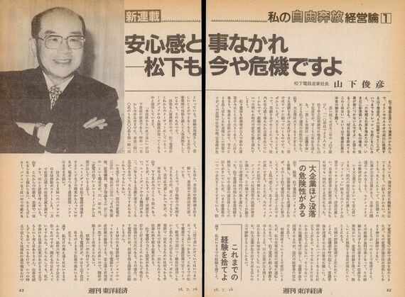 山下 大企業は大きくなりすぎると、また業績をあげればあげるほど、一面ではピンチに陥っていくものです。なぜかといえば、大きくなったことによって、業績をあげたことによって、社内に安心感と事なかれ主義を生んでいくからです。組織の感度が鈍くなり、いつの間にか時代の変化に乗り遅れてしまう。