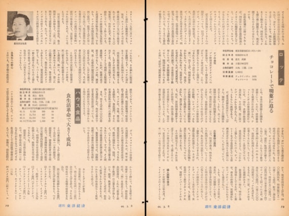 第一、売り上げ、利益が皆目わからない。もちろん、資金繰りも明らかでない。社長はすでに有名になったが、重光武雄氏。弱冠46歳で、日本在住三十数年というが、なお韓国籍をもっており、韓国朴政権とのつながりが深い。岸信介、福田蔵相をはじめ、日本の政界筋との関係も密接という。ために、政治献金等でも疑惑の目が向けられ、チューインガムの資本自由化については、一部は、多額の政治資金が流れ、その結果、第二次スケジュールからはずれた、とか、もっともらしい流説もある。