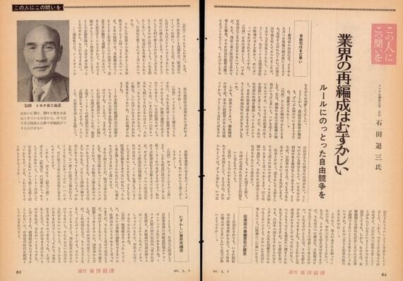 ――乗用車の自由化は、どうやら9月1日実施の線が濃いようですね。石田さんはかねてから、自由化尚早論を唱えておられましたが、もはや9月実施もやむなし、ということで、先日トヨタ系関係会社の幹部の方々を集めて、だいぶハッパをかけられたそうですね。