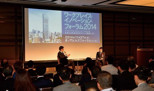 主催者を代表して挨拶に立った森ビルの森賢明氏は、フォーラムへの参加申し込みが定員を大きく上回ったこと、参加者への事前アンケートでは現状のオフィスに対して半数が不満を持っていること、2014年6月にオープンした虎ノ門ヒルズのオフィスがすでにほぼ満室であることなどを紹介。今後も「理想的なオフィスの研究に取り組んでいきたい」と語った。