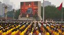 水陸両用戦車は、海岸に設置されている敵の防御陣地などに洋上から砲撃を加え、対岸からも自走榴弾砲や多連装ロケット砲が攻撃を加えている。それに続いて、敵が設置した地雷などの障害物を排除しつつ、上陸作戦が進行する。最後は、並べられた水陸両用戦車の前に隊員が整列し、「党の指揮を聞き、戦いに勝てるようになり、作風(仕事や思想上の態度)を優良にする」と合唱する場面で締めくくられる。