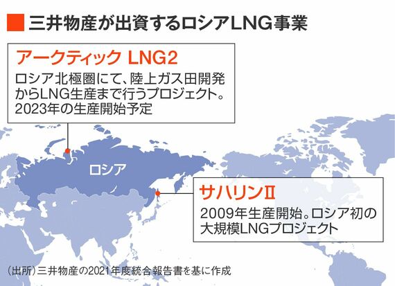 ロシアによるウクライナ侵攻を受け、三井物産が肝煎りで進めるロシアの巨大液化天然ガス(LNG)プロジェクトの先行きに黄信号が灯っている。