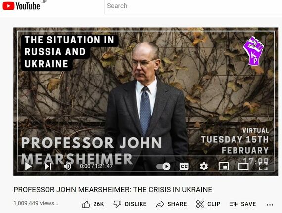 ロシアのウクライナへの軍事侵攻前後に、ミアシャイマー教授が出演したYouTubeの再生回数はともに100万回以上に達し、いわゆるバズっている状態だ。ロシアに理解を示す識者の言動は、同調圧力が強い日本ではほとんど見受けられない。
