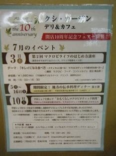 そして毎月、さまざまなイベントが行われ、月限定のお料理屋スイーツ、マクロビオティックのミニ講座などなど。私も講師をさせていただくことがあります。