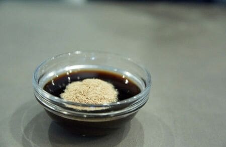 さあ、ここで魔法の粉登場。野本さんの言う「美味しさの秘密」とは、鰹節粉のことでした。いわゆる魚粉ですね。これをソースに混ぜることで、普通のトンカツソースとはひと味違う味わいに。和風出汁っぽい香りと旨味がプラスされ、複雑な美味しさになります。