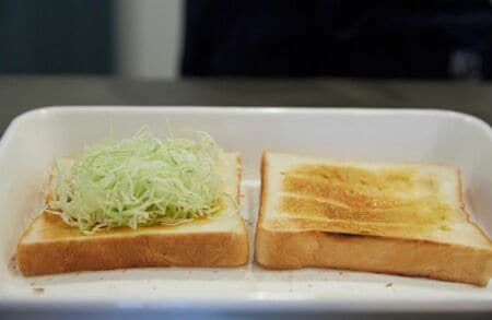バターと辛子を塗ったパンに、千切りのキャベツをたっぷり乗せて……