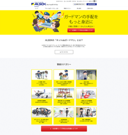 「ALSOK ネットdeガードマン」では、警備カテゴリーや契約の流れ、導入事例などがイラストなどでわかりやすく提示されており、外注する際のイメージが湧きやすい。