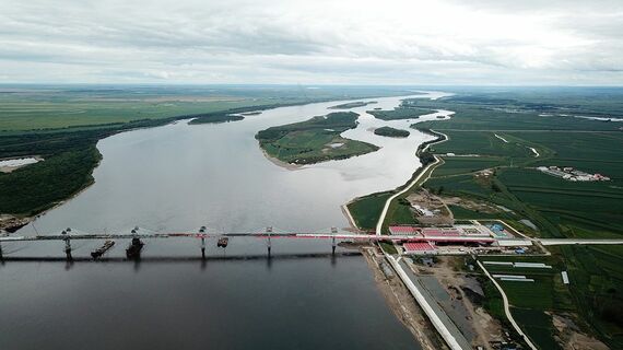 アムール川に架かる黒龍江大橋は、中ロ間で初めての国境橋だ。右側が中国領(Avalon / 時事通信フォト)
