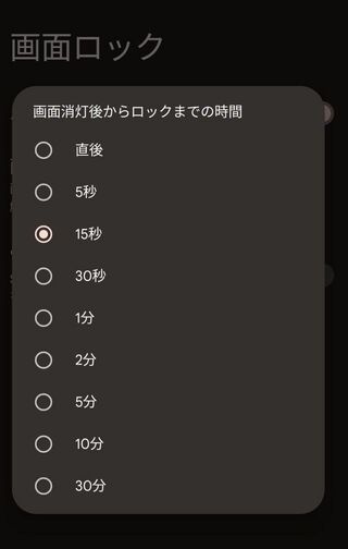 注意したいのは、あまりに長くしすぎると、セキュリティー的に問題があるということだ。ロックがかかったと思ってスマホを放置していたら、実際には画面が消えただけで、誰かにスマホの中を見られてしまうということが起こりかねない。設定では10分や30分といった長時間にすることもできるが、なるべく短めにしておいたほうがいいだろう。