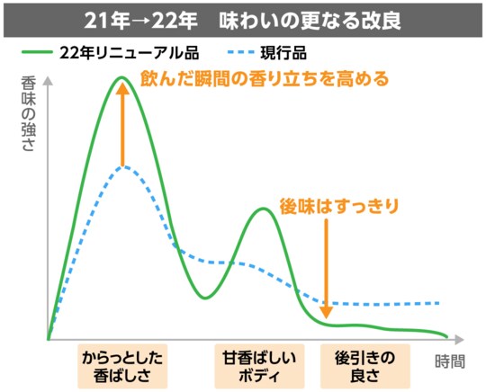 「“ゴクゴク飲める”を体現するために後味をすっきりさせて、もたつきを解消しつつ飲んだ瞬間の香ばしさを高めています。とはいえ、香り立ちと味のクリアさとは相反する要素ですから、実現には難しさもありました」(光星氏)