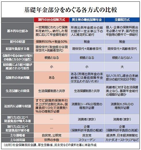 それなら、現行の基礎年金も国庫負担率をさらに引き上げ、給付に所得制限を設ければ、民主党案に限りなく近づく。自公両党には、低所得者の国民年金保険料を軽減・免除して満額の基礎年金を給付する、無年金・低年金対策案もある。「民主党案はゼロ円という形で保険料を払う義務を果たすことだから、大体の形はわれわれが考えている姿と変わらない」。両院合同会議で自民党の伊吹文明議員は喝破した。自民党は目下、政治的な思惑から与野党協議には慎重な姿勢だが、実は制度面で両者の調整は決して難しくない。