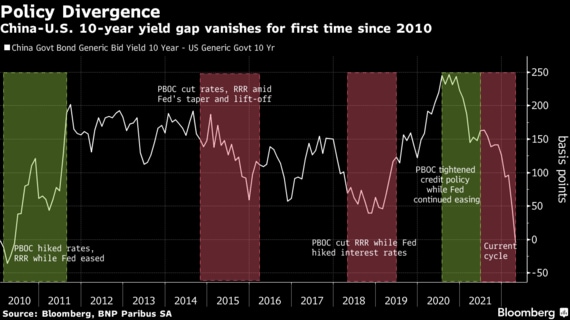 米中の10年債利回り逆転、12年ぶり-金融政策方向が正反対