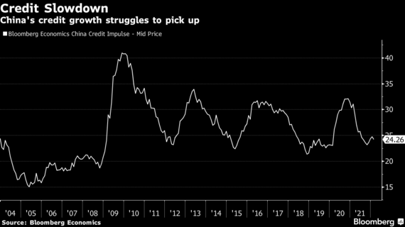 昨年2回の預金準備率引き下げと今年1月の利下げにもかかわらず、中国の国内総生産(GDP)に対する新規貸し出しの伸びを示す「クレジットインパルス」は2021年の急減速からまだそれほど回復していない。