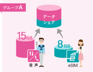 通話料定額オプションがあれば、通話料を気にすることなく子どもとのコミュニケーションが取れるから、Aさん夫婦にとってもぴったりだろう。さらに、ワンプラン化が進んだことであまり見られなくなった「データシェア」機能も新プランでそのまま利用できるようになっている。