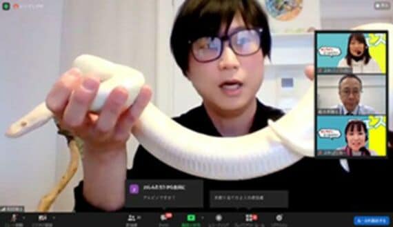 オンラインクラブ活動の1番人気は、「イラストクラブ」だ。専門の講師を招くほか、ドットアートが得意な生徒が講師として教える回もあったという。また、予想以上に人気となったのが「生き物クラブ」。爬虫類好きの県職員が講師となって、自宅から月替わりでヘビやトカゲなどと一緒に登場。子どもたちに大ウケしたそうだ。