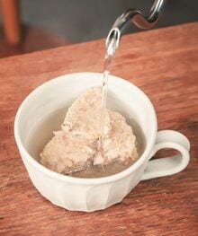 冷凍したスープのもとにお湯を注ぐだけだと少しぬるく感じるかもしれません。