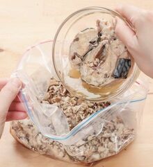 ④ 保存袋の中身を平らにして、冷凍保存する。