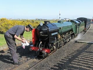 イギリス村にある「15インチレイルウェイミュージアム」と呼ばれる建物は機関車の車庫となっている。ここは本場英国にある保存鉄道の雰囲気を存分に味わえるところだ。愛情をこめて機関車を使い続けようという心意気が伝わってきた。