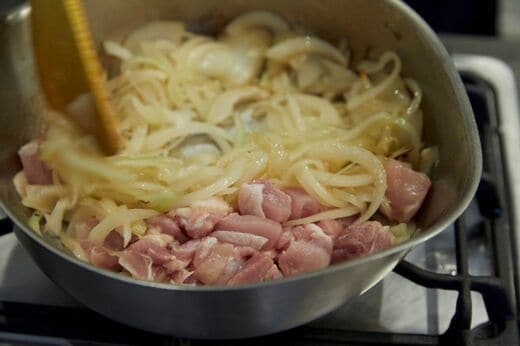 ここでプチポイント。カレー粉を加えたらしっかり炒めます。粉っぽさが残ると舌触りがザラっとして残念な仕上がりになってしまいますからね。
