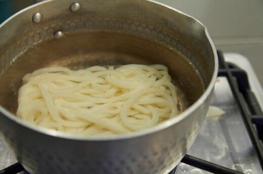 さあ、あとはうどんをゆでるだけ。冷凍うどんが安くて、おいしくて、簡単だからおすすめです。