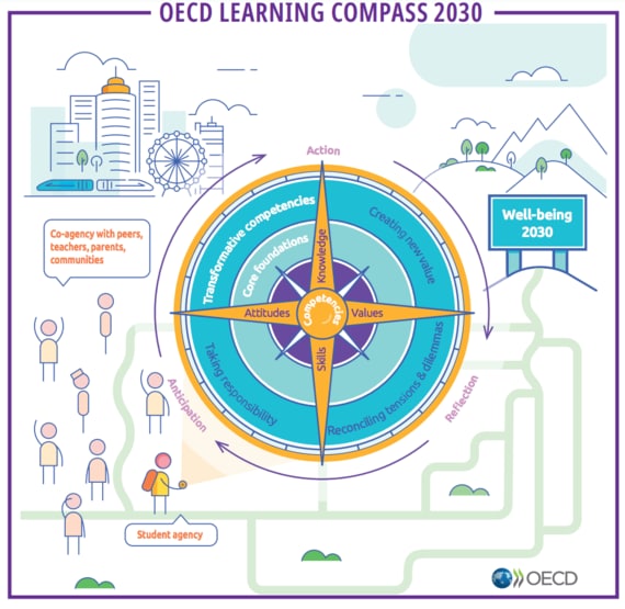 ここで注目したいのが、学びの目的地が、ウェルビーイングであるということです。ウェルビーイングとは、「肉体的にも、精神的にも、そして社会的にも、すべてが 満たされた状態にあること」を意味しますが、自分自身そして社会のウェルビーイングを実現するために、自ら行動できる意志を持った人を育成することが、世界の教育の目標になっているのです。