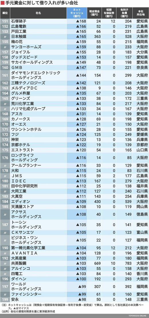 政治・経済・投資 借金の多い企業「西日本トップ199社」ランキング 上位には関西の重厚長大産業が目立つ結果に 2分で読める 公開日時:2022/05/13 05:10 東洋経済オンライン編集部 フォロー 1/5 PAGES 2/5 PAGES 3/5 PAGES 4/5 PAGES 5/5 PAGES