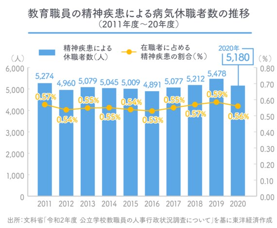 現在、公立学校教員の長時間労働が大きな社会問題となり、過労死なども起きている。国の調査では、うつ病など精神疾患から休職に陥る教員はほぼ毎年 5000 人以上とされ、疲れ切った教員による教育の質の低下を生み、教員志望者の減少・教員不足という大きな問題もこの給特法が要因だといえる。