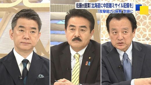 佐藤正久氏(自民党外交部会長・参院議員):法理論上は自衛権の範囲は地理的制限ではないが、現実的に大陸間弾道弾のような戦略レベルのものを持てるのかというと、技術的な問題、現実問題として議論が必要だ。反撃能力はあくまでも日米(同盟)の枠内での保有で、「拒否的抑止」の範疇だ。一撃打たれるまで何にもやらないというわけではない。今まで同様、「座して死を待つ」というわけではない。相手国がミサイル発射をするというのが何らか分かれば、当然、一撃される前に反撃すると(アメリカで)説明した。「歓迎する」「協力する」というのがアメリカ側のスタンスだ。CSISでは、スタンドオフミサイルについて説明して、地上発射型だけでなく、空中発射型、水上発射型、あるいは潜水艦(水中)発射型も必要だと(述べた)。中国は地上発射型短・中距離弾道ミサイルだけで約1900発持っている。日米はゼロだ。巡航ミサイルまで入れると約2500発対ゼロという状況だ。撃ち落とすことが難しいミサイルが出てきた以上、ある一定程度の反撃力をわれわれも持たないといけない。今500kmから900kmのスタンドオフミサイルを国産、あるいは輸入で対応しようとしているが、とても900kmでは足りない。将来的にもう少し長いものを日米で共同開発する、あるいは自国で開発する場合、日本は非常に広く3000kmあるから、北海道に置けば尖閣諸島を守ることもスタンドオフとしてできる。西日本に移動することができれば、相手領域のさらに奥まで届く。ロシアも中国も、北京も一定程度カバーできる。「複合事態」を考えれば、北海道は一つの有力な選択肢だ。極超音速(兵器)のような相手が打ち落としにくいもの、あるいは、終末段階(降下突入時)で回転するようなものであれば、少ない数でいい。単純軌道のものだと相当打ち落とされるから、ある程度数を持たないといけない。「反撃能力」は言葉遊びではなく、実際具体的にどういうものを持つのかという議論を現場レベルの意見を聞きながら、政治が組み上げていくことが大事になる。
