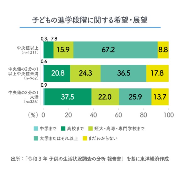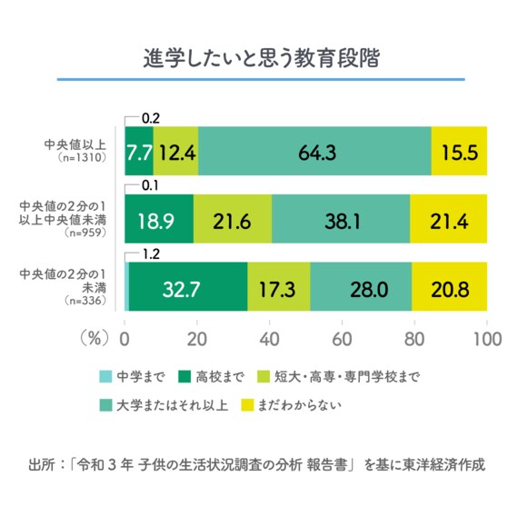 支援制度があっても、経済的状況によって親子の教育期待が押しとどめられている実態があるのであれば、結果を出せていない「やりっ放し教育行政」である。データを見て考えてみよう。