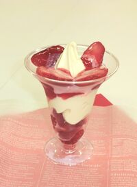 フルーツパフェシリーズは全体的にカロリーが低いのが特徴で、ヘルシーな印象のため、女性や年配の客層に受けがよいという。今回はいちご自体ももともとローカロリーであるため、144キロカロリーという控えめな数字に落ち着いている。これなら、ダイエット中の人でもそれほど罪悪感なく食べられそうだ。