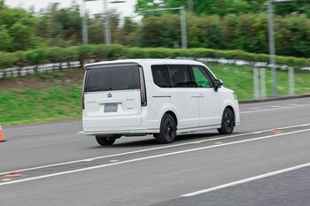 ほかにも、交差点を右折する際、歩道橋がある歩道に歩行者に見立てたパイロンを設置したコースがあった。そこを通過する際、パイロンの存在はフロントウインドウから三角窓、サイドウインドウまでずっと視界の隅に感じられたことで、死角が少ないことも体感できた。さらに、フロントウインドウからの視界に、高いワイド感や開放感を持つことも実感できた。水平基調のダッシュボードなどが生むこれら効果は、最近のホンダ車、フィットやヴェゼルなどにも共通したもので、運転者や助手席のパッセンジャーが、ドライブなどで周囲の景色を楽しみながら走行できることがうかがえた。