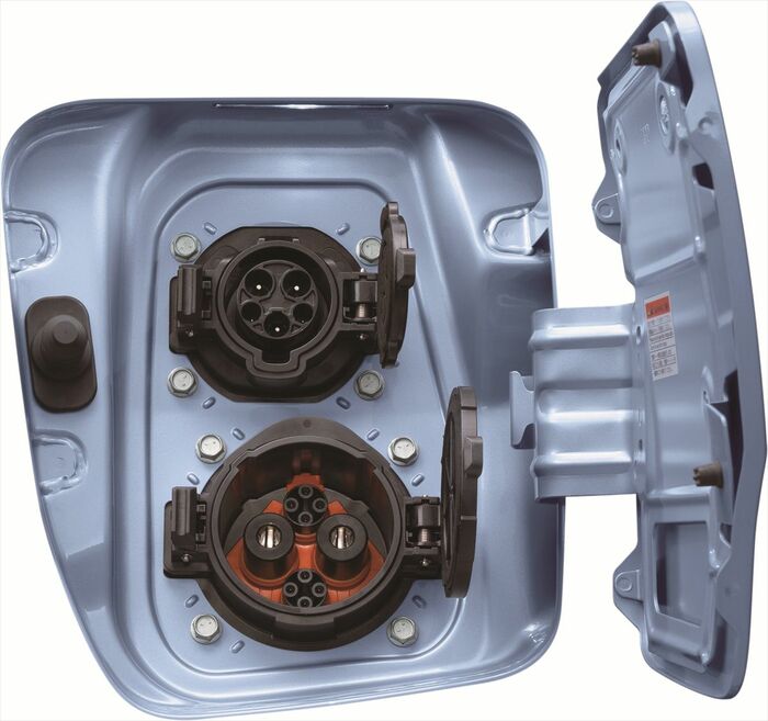 充電は、200Vの普通充電とCHAdeMO規格の急速充電に対応。バッテリー残量警告灯が点灯してから普通充電なら8時間で100%、急速充電なら約40分で80%まで充電できると説明されている。