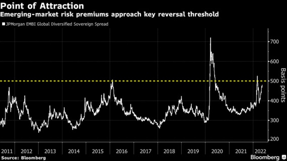 MSCIが新興国市場として分類する24カ国の株式バリュエーション総額は21年序盤に付けたピークから4兆ドル減少し、ブルームバーグのドル建て債と現地通貨建て債の指標はピークからそれぞれ5000億ドルを失った。投資家の最大の懸念は米金融当局による利上げと量的引き締めだが、インフレ高進や中国での新型コロナウイルス感染再拡大、ロシアのウクライナ侵攻も影響している。
