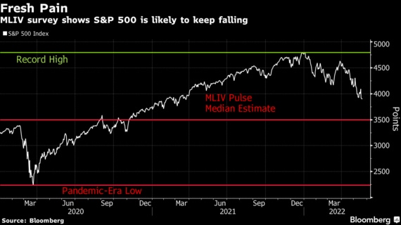 S&P500種は先週に弱気相場入りの瀬戸際に立たされ、時価総額1兆ドル(約128兆円)余りを失ったが、「マーケッツ・ライブ(MLIV))パルス」最新調査の参加者は、今後さらなる痛みが待ち受けると予想している。
