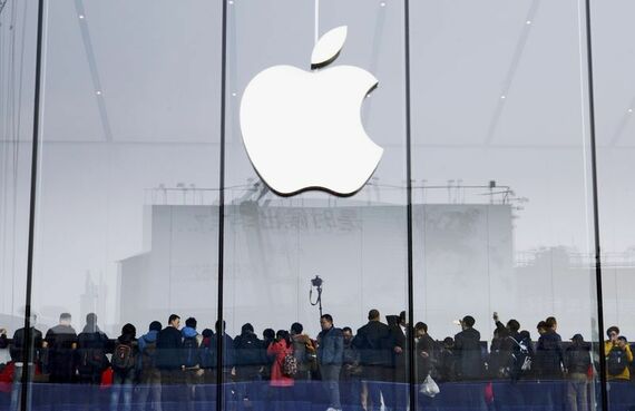 1月27日、アップルの中国スマホ出荷台数が、第4・四半期に首位だったことが明らかになった。写真は杭州でオープンした店舗に詰め掛けた客。24日撮影(2015年 ロイター)