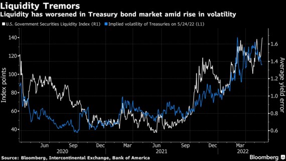 適正価格モデルからの利回りの逸脱を反映するブルームバーグの米国債流動性指数は25日に上昇し、新型コロナウイルスのパンデミック(世界的大流行)初期の2020年3月以来の高水準に達した。