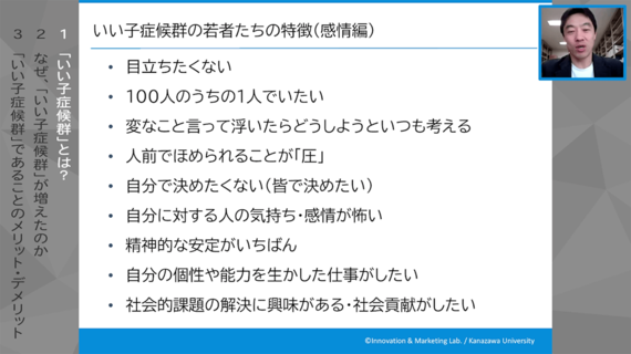 「いい子症候群」の若者が持っている感情って、多くの人が感じることではあるんですよね。人前でほめられると恥ずかしいと思うこともあるし、とくに複数の中で何かを決めようとしているときって、自分で責任を取りたくない、できれば誰か決めてくれないかな、みたいな感情は絶対ありますよね。もちろん、精神的な安定っていうのは大事ですし。