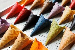 コーンもアイスクリームと同じくらいワクワクするものであるべきだと、同氏は考えている。彼女のコーンは、オレンジ色のアイスクリーム入りアイスキャンディーや塩味のブルーコーンのように、鮮やかな色と味が特徴だ。