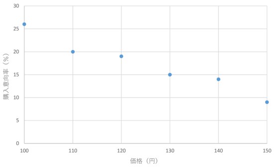 事象「購入意向率」と要因「価格」には、何か関係が見出せそうに思える。この関係を客観的に明らかにする手法の1つが、回帰分析である。