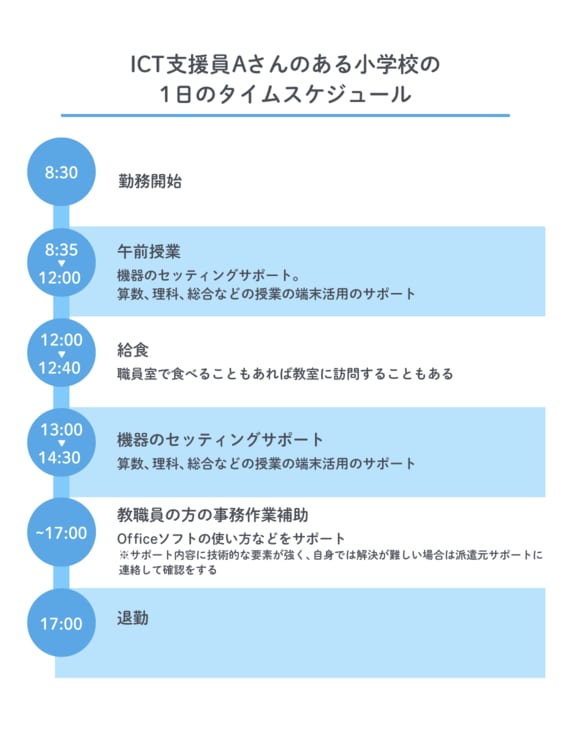 ICT支援員Aさんはある自治体の小中学校でICT支援を行っています。ある小学校での日を紹介します。