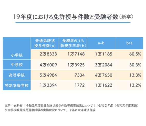 つまり、教員免許を保有しない人、また保有している人、いずれについても、適切な人材がいるならば、社会人経験者の採用は拡充していくべきだろう。だが、こんにち深刻化している教員不足の解消への切り札にはならない。