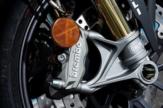 また、ブレーキはフロントに320mmローターのブレンボを装着し、リヤは245mmローターだが制動力に不満はなく、装着されたピレリ・ディアブロ・ロッソコルサⅡとのマッチングもセンスのよさがうかがえる。付け加えるならリチウムイオンバッテリーとシングルシート(パッセンジャーシート&フットペグは同梱)、新型サイレンサーの採用でスタンダードモデルに対して3kgの軽量化を実現し、記念モデルとしてのステイタスも達成している。