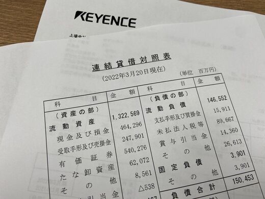 キーエンスの決算書に借入金の項目はない(写真:編集部撮影)